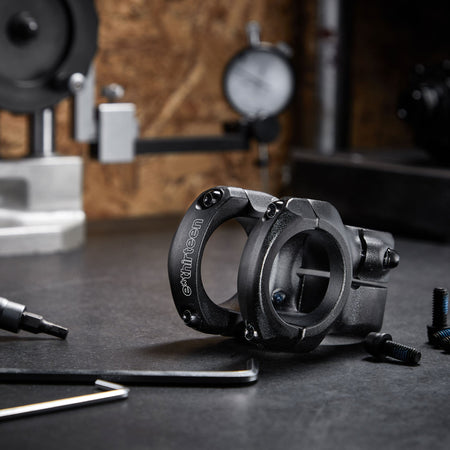 The Base 35 Stem delivers all the technical benefits of our Plus stems, in a no-nonsense package that's friendly on the wallet. Forged and CNC cut from 6061 alloy, it features an ingenious rear clamp design integrating low-profile T25 hardware to protect the rider's knees while looking clean and technical. The moto-inspired zero gap, 35mm barclamp design further optimizes cockpit strength-to-weight ratios, ease of assembly, and security. The Base 35 Stem is bead-blast black ano finished, with laser etched logos and convenient bar angle indicator markings.