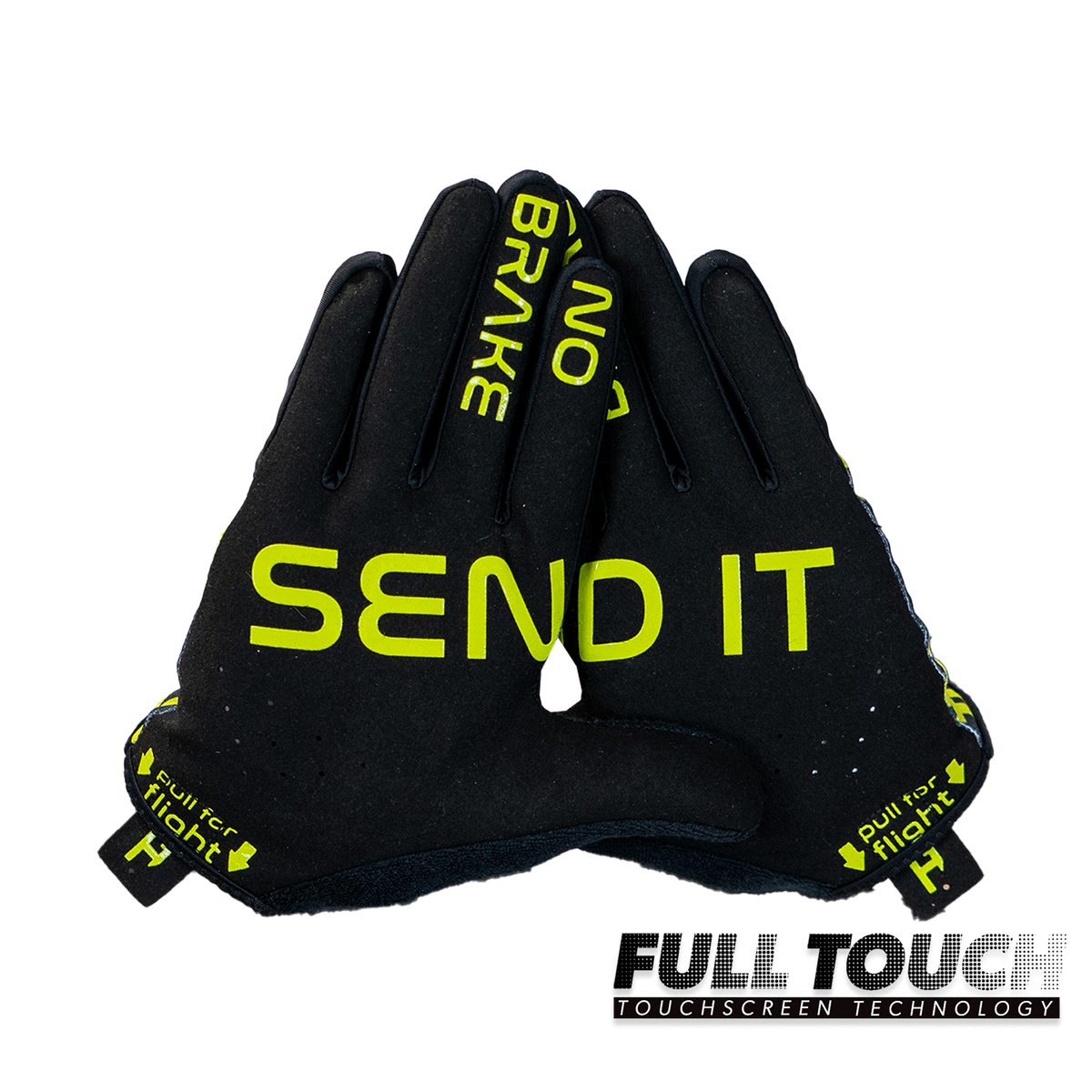 Futura means "about to be", which is what inspired us to design this post-streetwear designed glove that showcases a wavy HANDUP logo and futuristic pieces that point to us "about to be" shreddin' on the bike. Welcome to the Future.