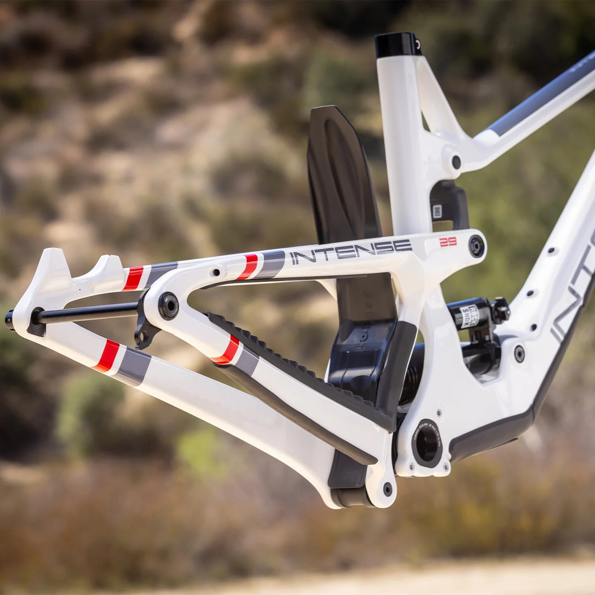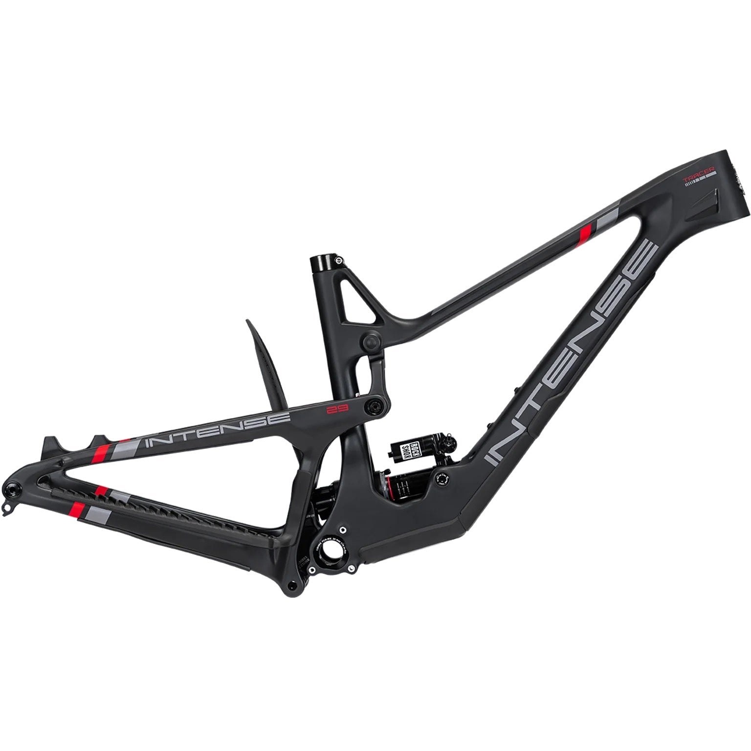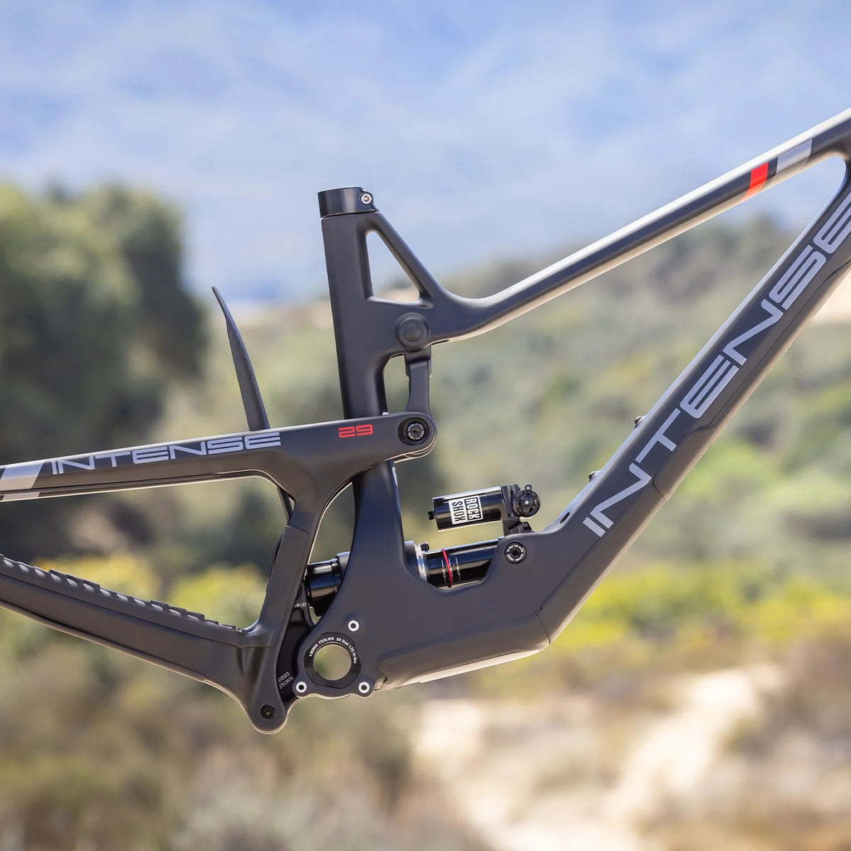 | FRAME | Full carbon fiber front and rear triangle utilizing an optimized carbon layup for the enduro category. Features fully guided internal cable routing, carbon top link, titanium hardware, ISCG-05 tabs, and threaded BB. Universal derailleur hanger (UDH), T-type compatible, quick release rear axle (148mm Boost Hub Spacing) |