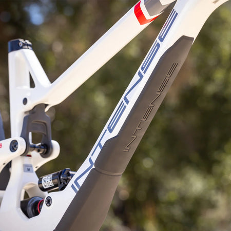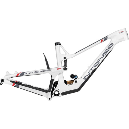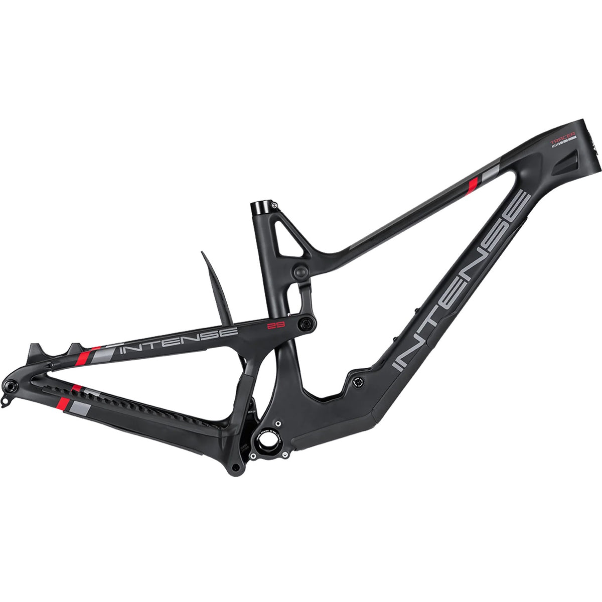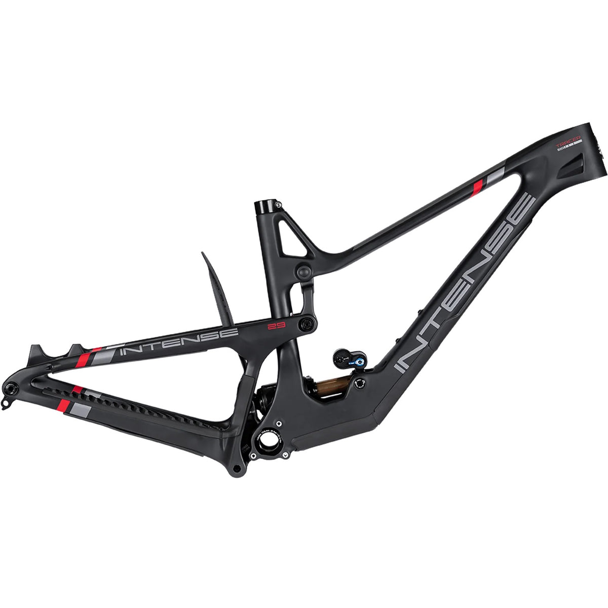 | FRAME | Full carbon fiber front and rear triangle utilizing an optimized carbon layup for the enduro category. Features fully guided internal cable routing, carbon top link, titanium hardware, ISCG-05 tabs, and threaded BB. Universal derailleur hanger (UDH), T-type compatible, quick release rear axle (148mm Boost Hub Spacing) |