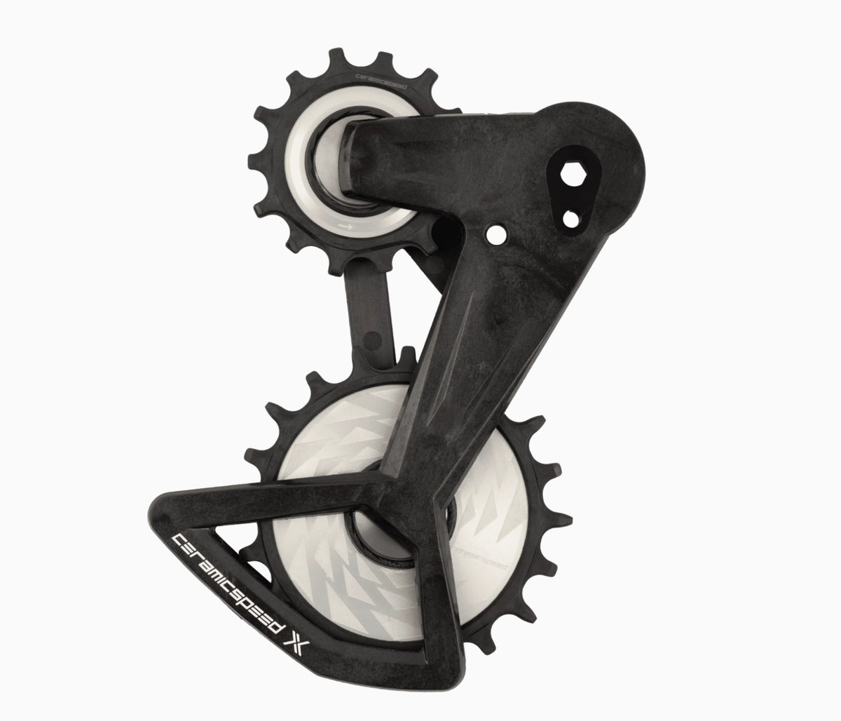 Note: while the cage mounting interface is visually the same between SRAM Transmision derailleurs and the new SRAM RED XPLR 13 speed derailleur, the pulley placement and rotation of the cage are different, and we do not support using this cage on any XPLR derailleurs.