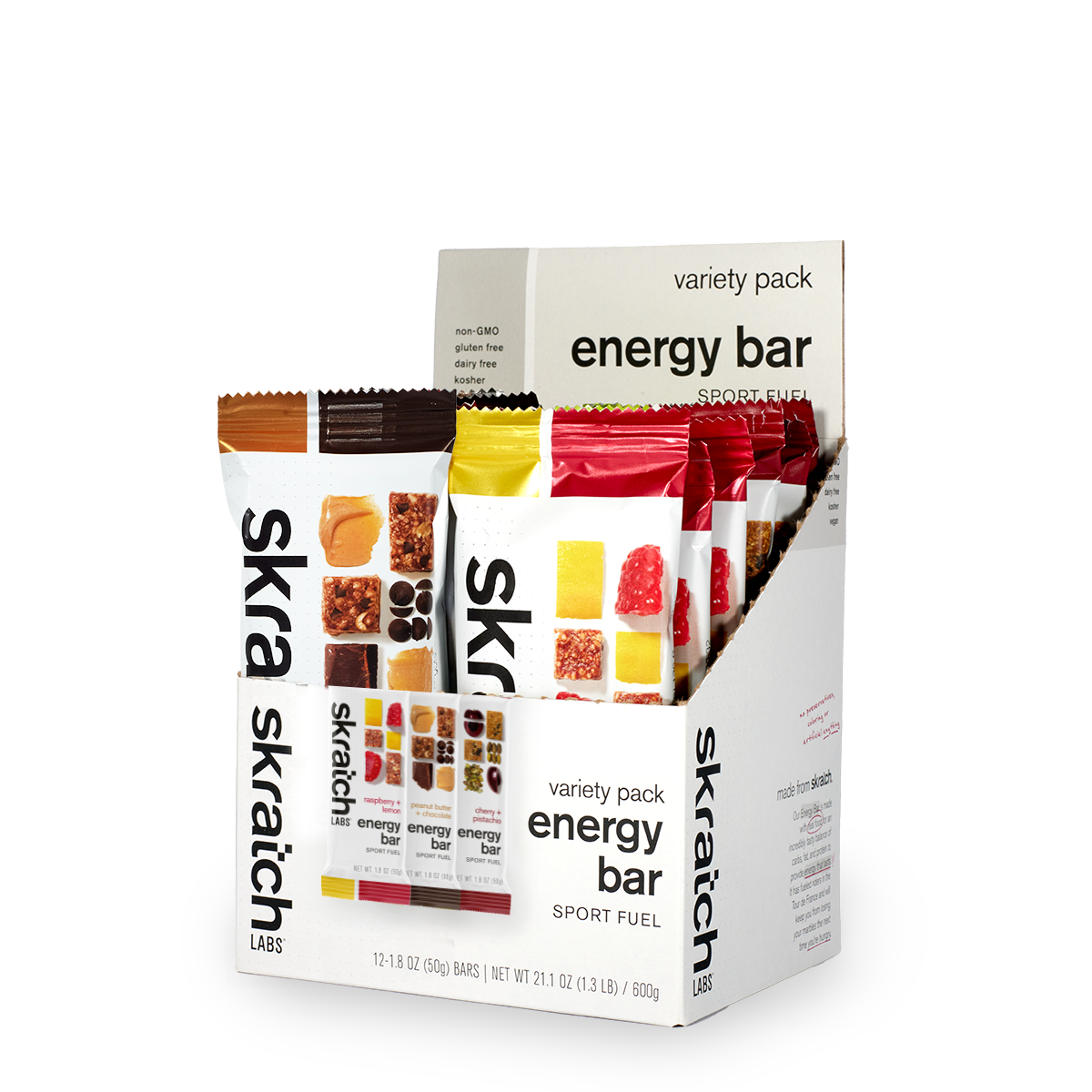 Skratch Labs Energy Bar Sport Fuel was designed as a fuel source for when you need it most. We kept the bar as simple as possible, using the fewest number of whole food ingredients without sacrificing taste. Our energy bars have a mixed macronutrient profile of protein, fats, and carbs for steady digestion and absorption with 4-5g of protein from nuts & nut butters.