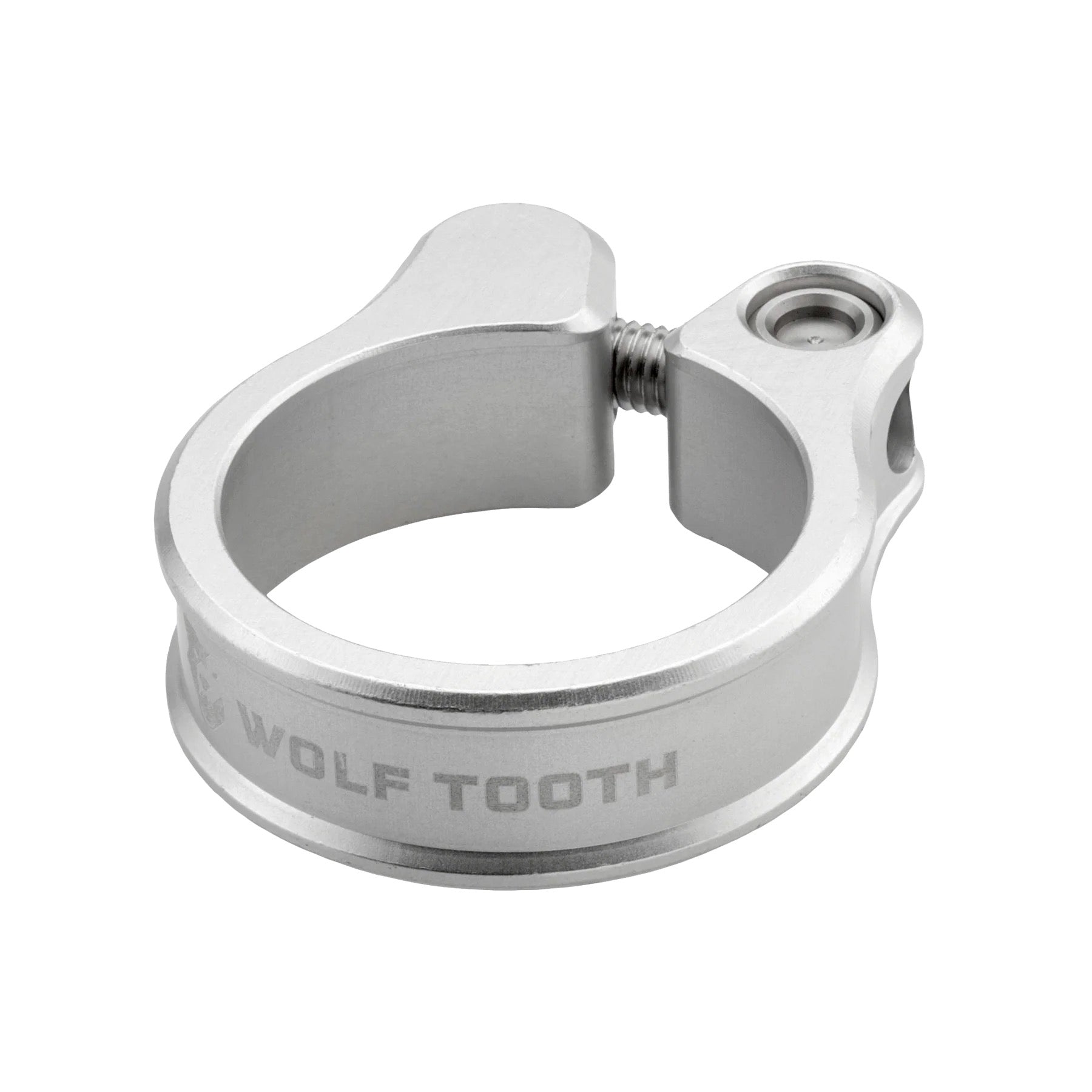 The precision-engineered Wolf Tooth Seatpost Clamp secures your seatpost and looks good doing it. At the heart of this seatpost collar is our custom self-aligning bolt and anchor. The M5 bolt includes a spherical washer and mates with a cylindrical anchor barrel. This means that threads are always perfectly aligned, preventing binding and ensuring consistent clamping force.